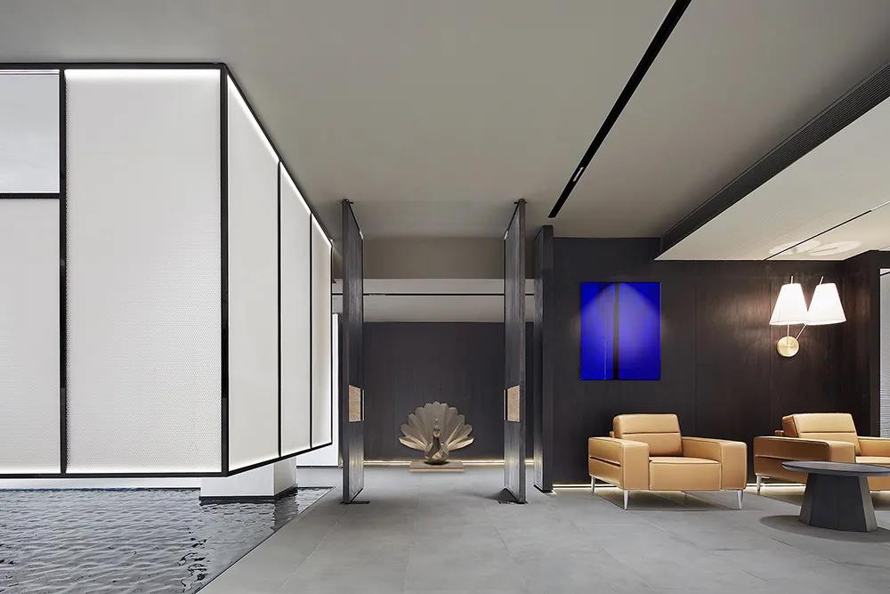 富有變化的網(wǎng)格造型讓前廳于虛實(shí)之間自如轉(zhuǎn)換,