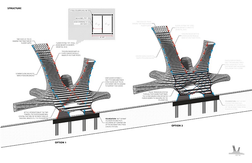 AMLGM事務(wù)所的chad kellogg和matt bowles計劃建造“城市合金塔(Urban Alloy Tower)”項目,重新定義傳統(tǒng)的居民樓,豐富新式住房的類型。這個項目周圍有很多交通路口, 比如輕軌和高速公路。如果想要優(yōu)化生活環(huán)境, 那就要采用特殊的建材,可以建在這些交通要道之上。這種設(shè)計為當(dāng)前的城市翻新提供了新思路,也是紐約城市設(shè)計的新探索。