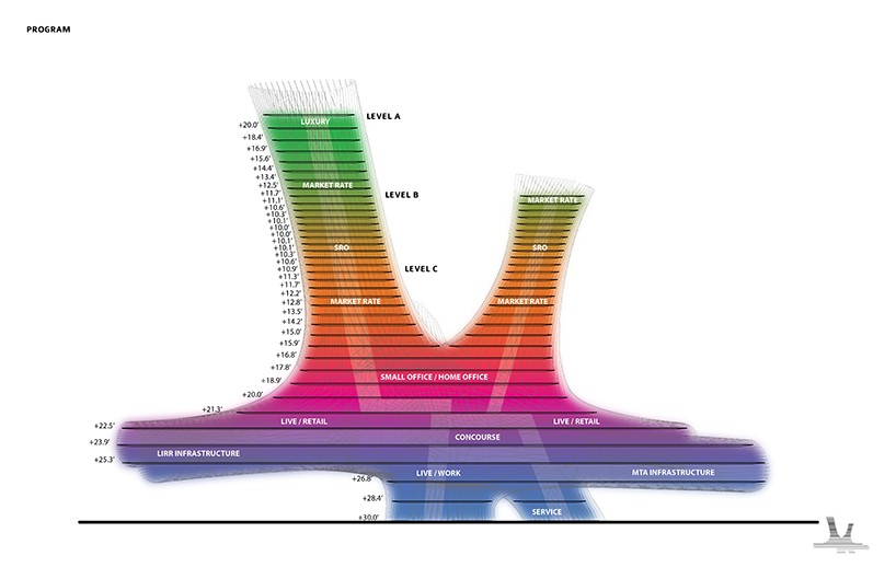 該項目以紐約市LIRR地鐵換乘站為背景,采用先進(jìn)的照明和能源技術(shù),將居住、購物、商務(wù)等功能融為一體。設(shè)計師:Chad Kellogg,Matt Bowles