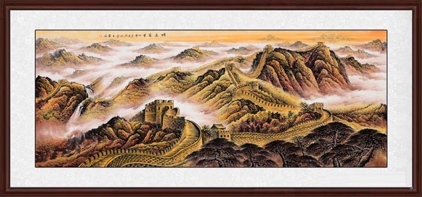 2:畫作整體使用金黃暖色系繪制,寓意一副金色的中國夢由此展開,和諧盛世生生不息,國畫長城掛在辦公室,都有如大山可靠,事業(yè)級級上升。
