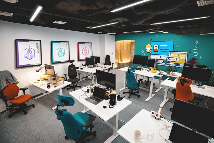 辦公場所的設(shè)計:此處主要為后期測試與前端工作人員辦公的場所,在這里開放與私人相互結(jié)合在一起,開放的空間讓員工如一家人一樣,私人的設(shè)計讓員工擁有自己獨立的辦公空間,這樣做的目的就是給每一個員工留下獨立思考的空間,消除空間的弊端,讓辦公更加有趣。