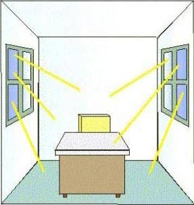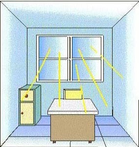 靠窗的辦公室,要注意窗外十公尺以內(nèi)其它房屋射入的尖角,尖角距離越遠(yuǎn)影響越小,距離越近影響越大。