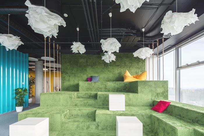 目前有許多設(shè)計(jì)師將明度較高的綠色引入辦公室這類設(shè)計(jì)往往給人一種良好的視覺(jué)效果從而創(chuàng)造一種春意這也是一種明快感在室內(nèi)的創(chuàng)意手段。