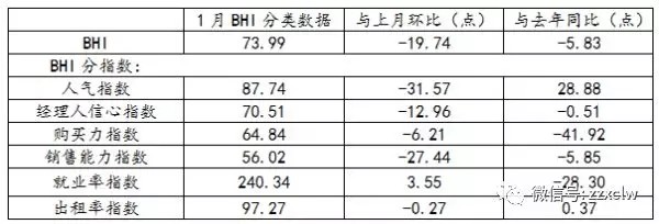 1月份全國建材家居景氣指數(shù)(BHI)為73.99,環(huán)比下降19.74點(diǎn),同比下降5.83點(diǎn)。