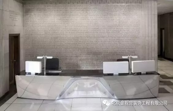 公司前臺設(shè)計方案辦公室前臺是體現(xiàn)公司形象的門戶所在,辦公室前臺設(shè)計不僅顯示出一個公司的實力,又是能起到人際交流、商業(yè)禮儀、形象戰(zhàn)略等諸多方面的重要作用。所以公司前臺裝修設(shè)計絕對不能輕率應(yīng)付。不同風格的前臺在設(shè)計的因素以外,材質(zhì)的使用是影響最大的因素,而從細節(jié)上來說,最主要是一些用料的細膩以及施工質(zhì)量保障辦公室設(shè)計的整體設(shè)計效果。下面跟隨金視覺裝飾看看這些超級養(yǎng)眼的前臺設(shè)計。